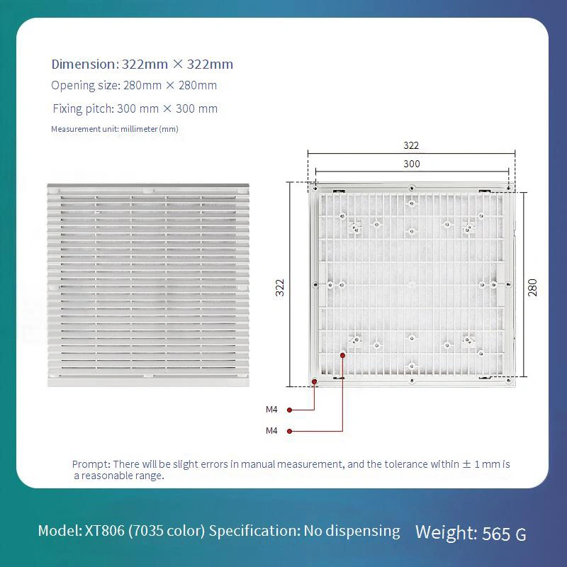 Penutup Debu Plastik Pembuangan Panas Standar selalu tersedia untuk pengiriman segera. Penutup Debu Plastik Pembuangan Panas ini memiliki desain berventilasi yang mengoptimalkan jalur aliran udara untuk meningkatkan efisiensi pendinginan. Cocok untuk perangkat elektronik dan lemari yang perlu digunakan dalam jangka waktu lama, dan dapat menangani kebutuhan berbagai jenis lingkungan industri.